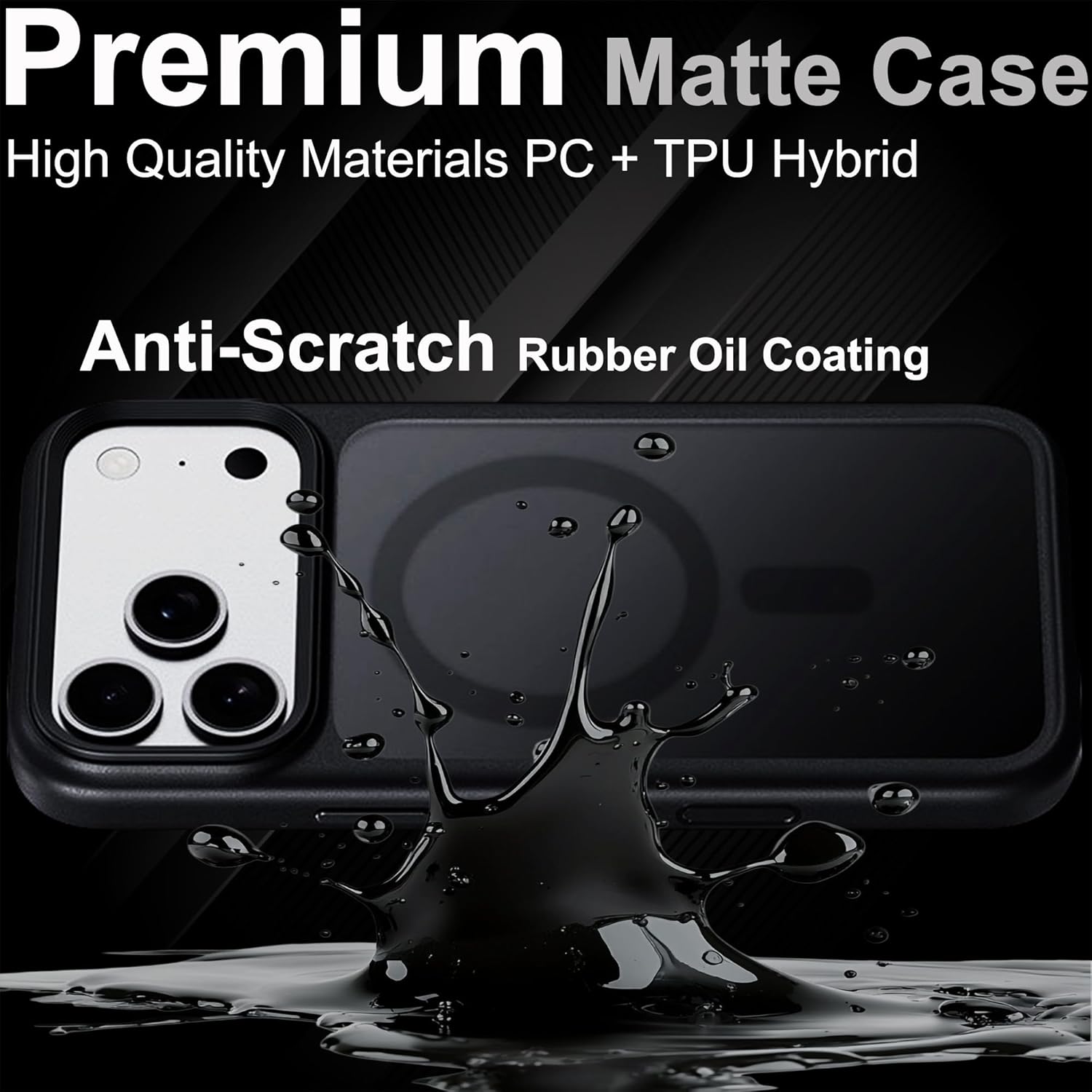 OLIVIC Premium Matte Case is a sleek, high-quality hybrid phone case combining durable PC (polycarbonate) and flexible TPU for superior protection. It features a built-in magnet (N52 grade, >1.2KG hold), a metal/aluminum camera key, an aluminum lens ring design, and an anti-scratch rubber oil coating for a premium grip and scratch resistance